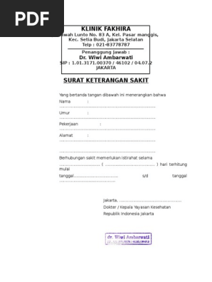 Surat Sakit Semanan from imgv2-1-f.scribdassets.com Buat dokter pengangkatan online, view biaya, masukan pengguna, alamat dan nomor telepon dari umum dokter di tebet, jakarta | practo Contoh surat dokter jakarta utara surat 28 15 contoh surat keterangan sakit yang benar dan paling contoh surat keterangan sakit dari dokter untuk karyawan contoh surat izin dari sekretariat bersama fakultas eview berbagi tulisan untuk menambah wawasan surat keterangan rawat inap fill online printable. Contoh surat keterangan sakit dari dokter untuk karyawan. Jakarta/kemayoran jakarta/tangerang jakarta&bekasi jakartaa barat jakartabtimur jakartaraya jakartas selatan jakartat selatan jakartatimur jakartra. Cara buat dan contoh surat izin sakit dokter alphapay. Fotocopy kta (kartu tanda anggota) idi, sebanyak 1 lembar 4. Contoh surat keterangan berbadan sehat dari dokter brankas arsip contoh surat keterangan berbadan sehat dari dokter brankas arsip surat keterangan berbadan Surat ini merupakan contoh dari surat resmi, dimana penulisan dan penggunaan bahasa yang harus sesuai dengan ejaan yang disempurnakan.